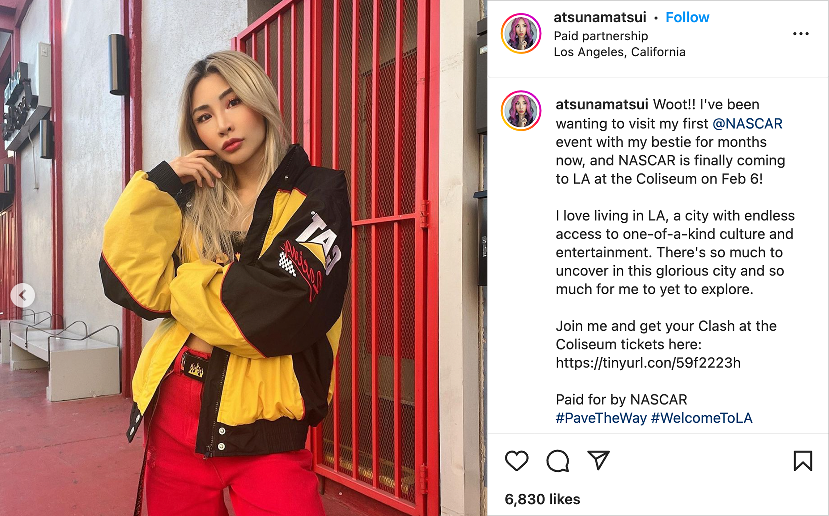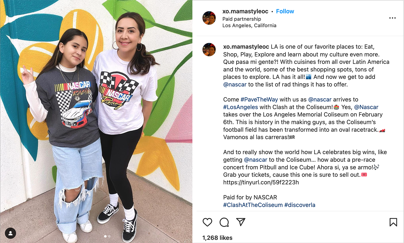 - These stories succeeded in raising NASCAR’s profile in both the Latino community as well as nationally, welcoming NASCAR and its drivers to L.A., fostering cross-cultural representation in the sport, and encouraging an unprecedented number of creators’ followers to buy tickets to the historic Clash at the Coliseum.