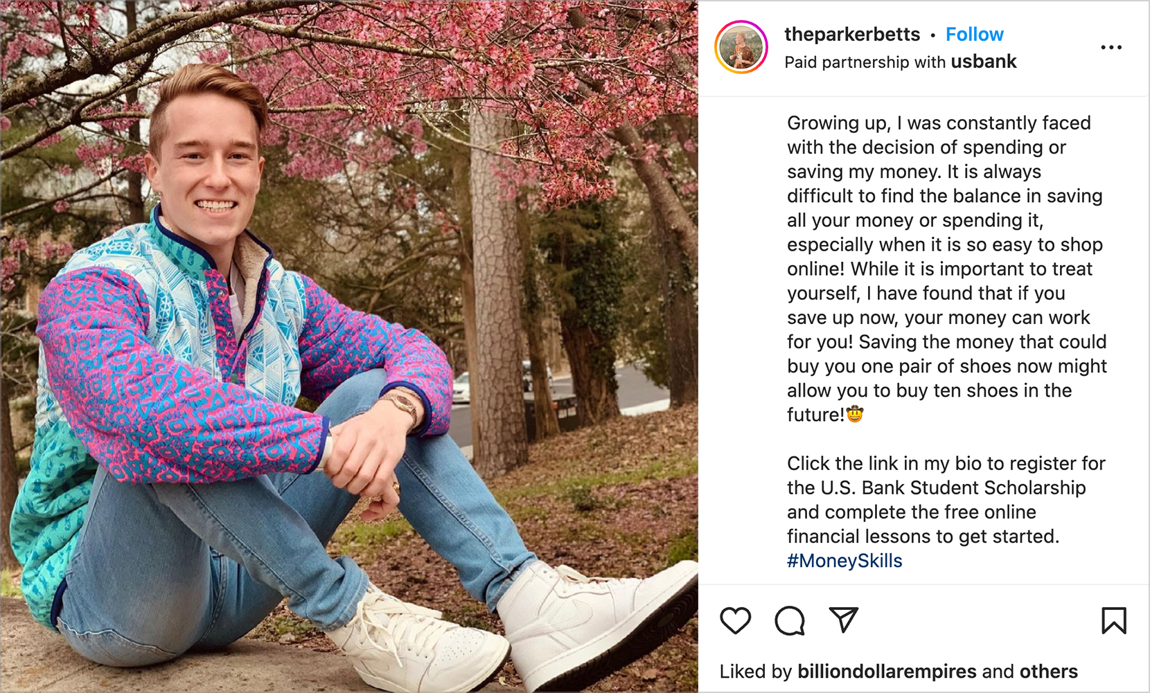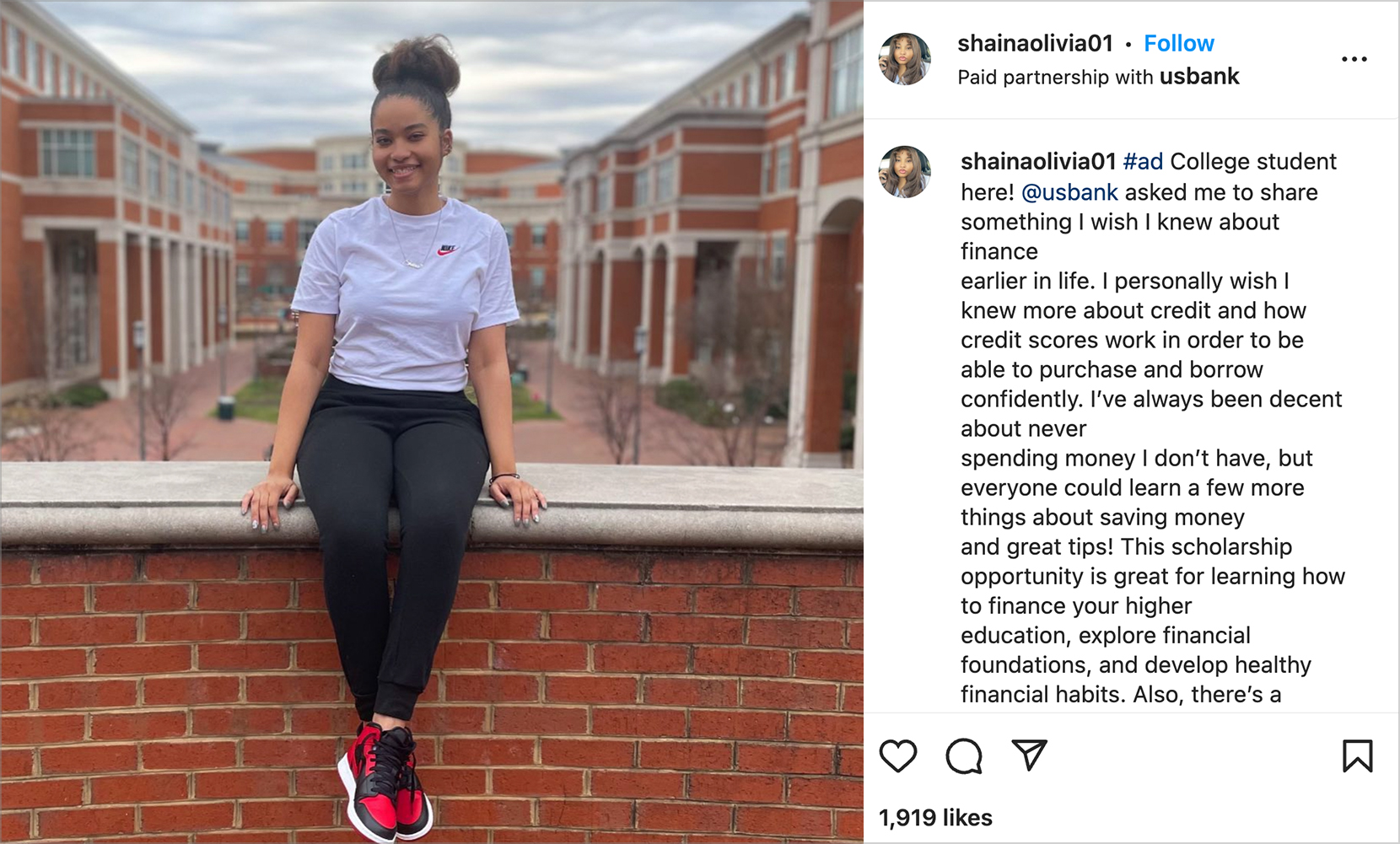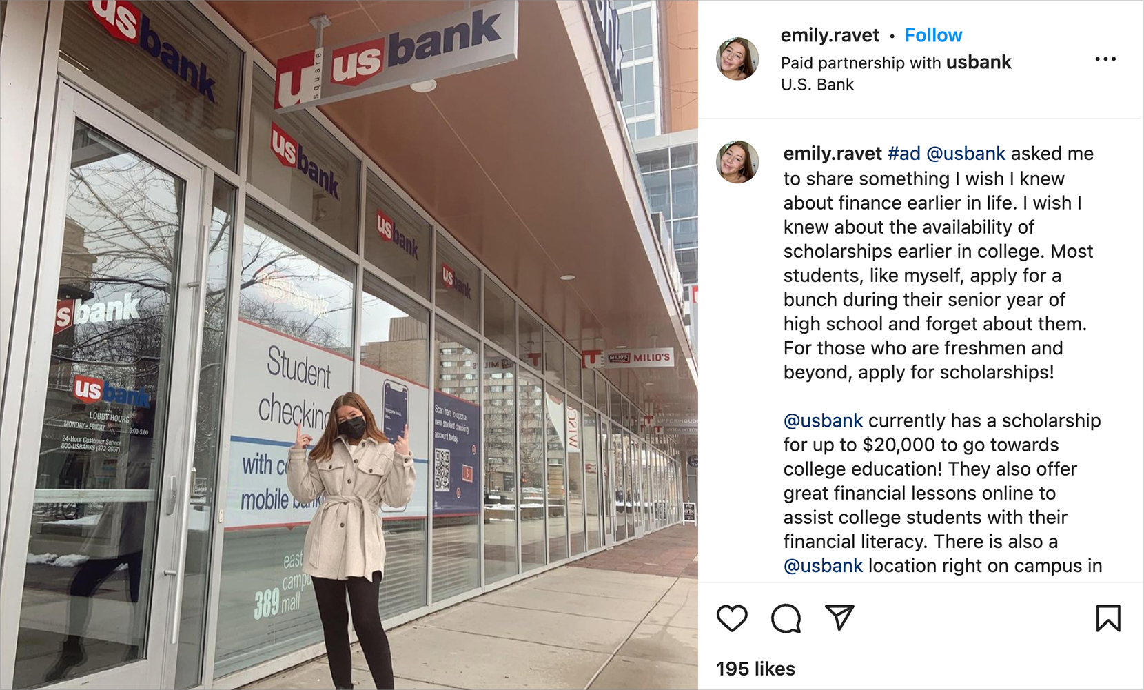 - We recruited a large cross-section of these creators to share what they wished they knew about managing money in college and to enroll in a financial literacy program, qualifying them to earn up to $20K in tuition assistance from U.S. Bank.