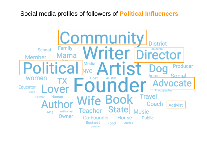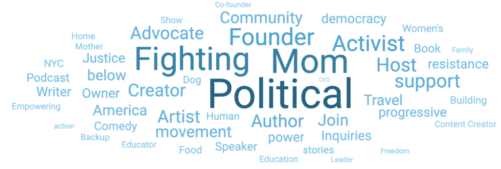 Many describe themselves as political communications or media professionals, political activists, or progressive content creators. This concentration reinforces echo chambers rather than expanding reach.